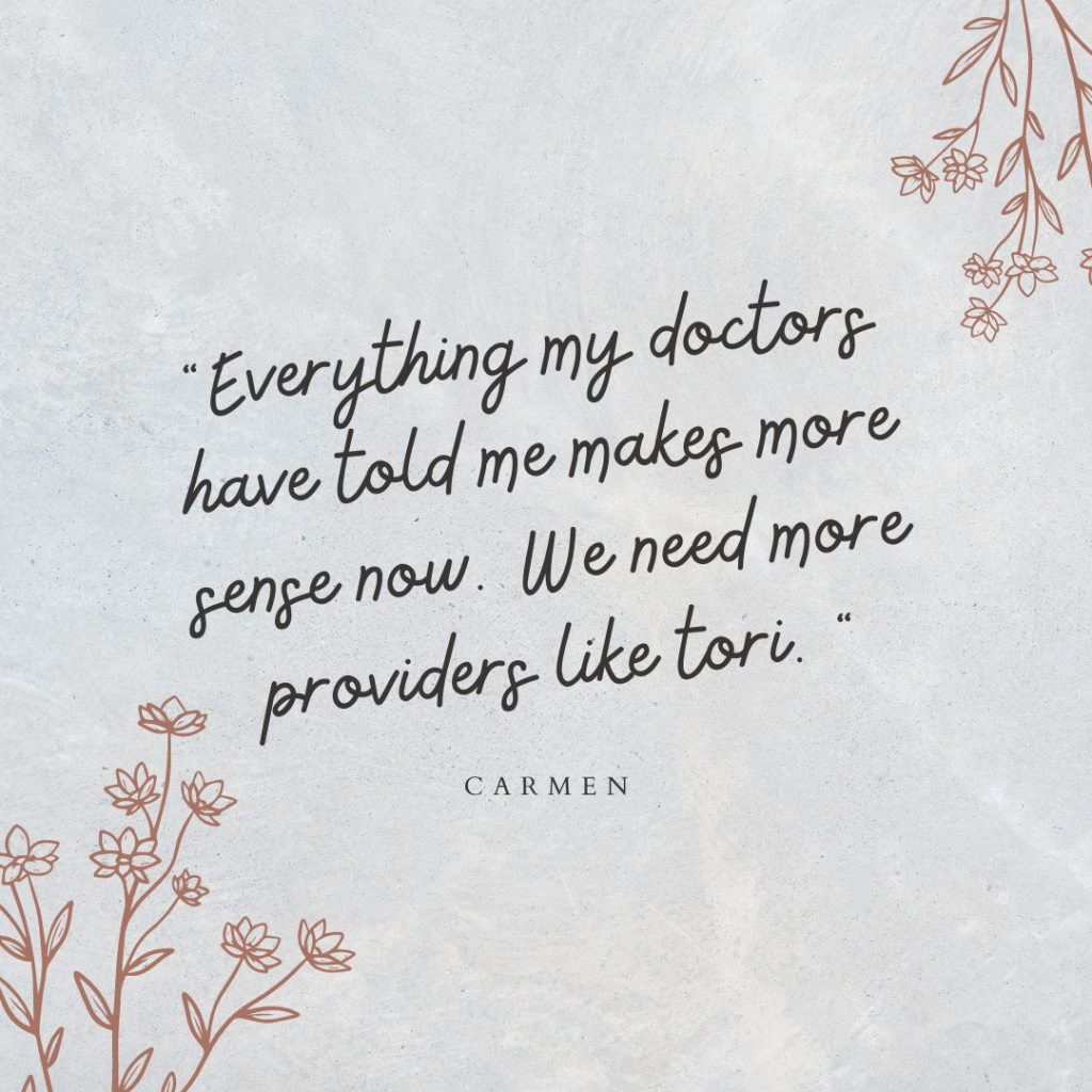 Submit your inquiry form to connect with Dr. Tori today to discuss how it works and how it would benefit you! If we are a good fit for you we will get you on the schedule!